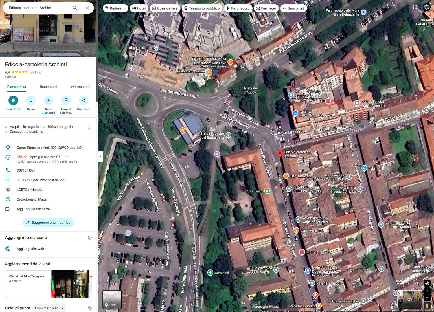 Ci trovi in Corso Ettore Archinti 100, Lodi (LO), 26900